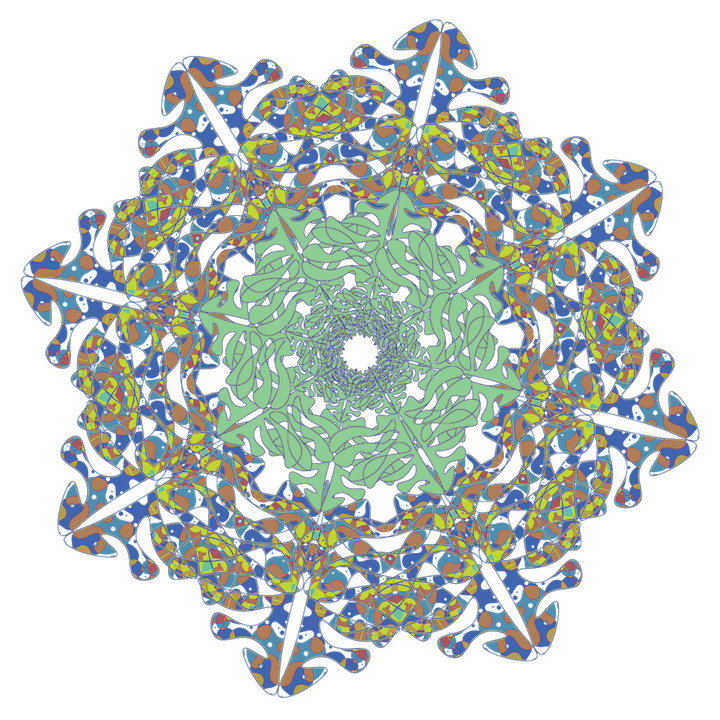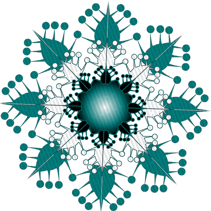 Using the template provided for Adobe Illustrator, create a snowflake by starting with a single half quadrant of a circle, and repeat this motif into a radial pattern, creating the foundational layer of your snowflake. Repeat this process and styling as you wish.