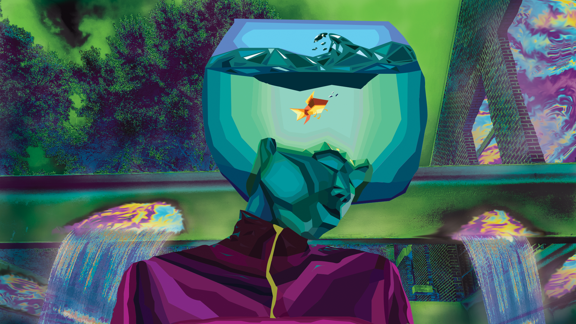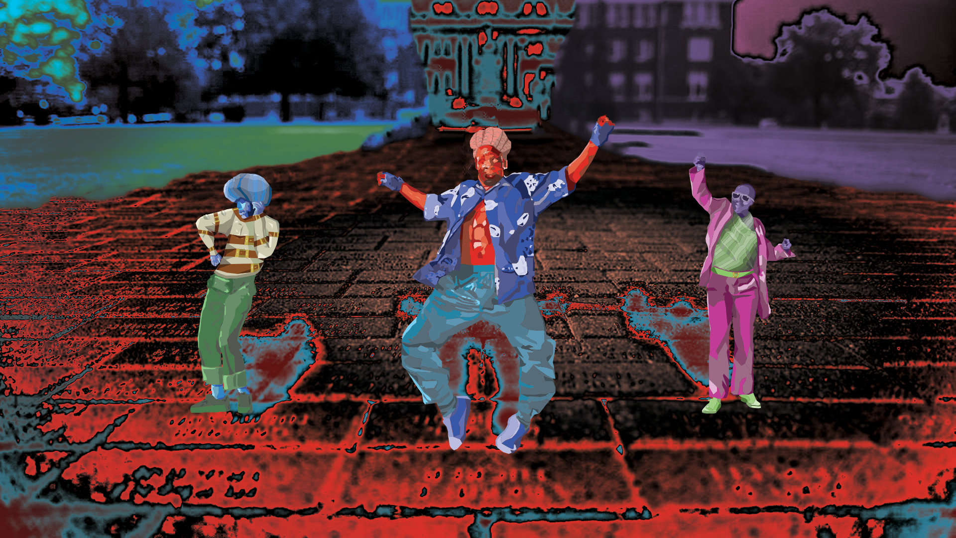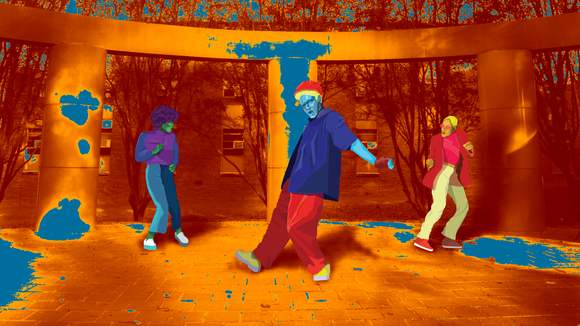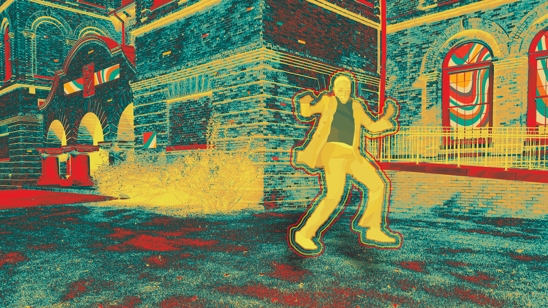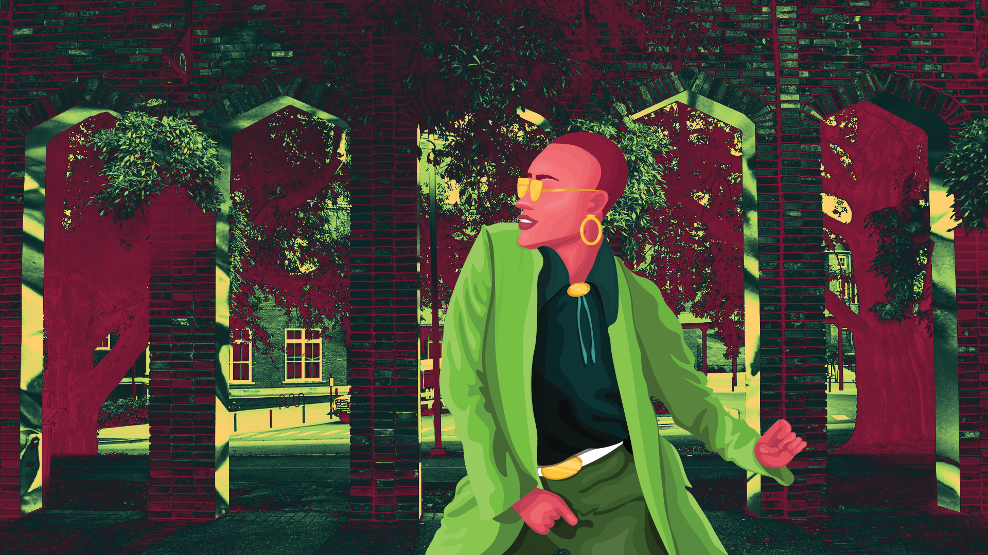 Usinig a combinaton of Photoshop and Illustrator to build a new and cohesive image. The character in the foreground must be made with Illustrator, the background must be made with Photoshop.