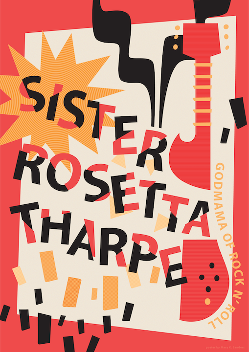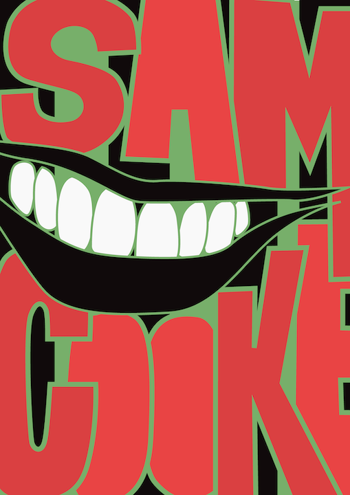 In researching Sam Cooke, the very first thing I noticed about him was his joyful smile. I wanted to capture that in a simple way, while still exemplifying his role in the the civil rights movement. I did this by including the colors and lines of the African American flag subtly while keeping his smile and name at the forefront.
