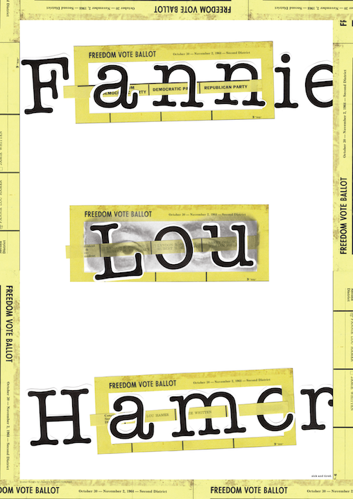 While doing research, I discovered that she was barred from the Mississippi House of Representatives ballot in 1964. I decided to scan in majority of my poster and manually layer type because it was more authentic and true to the nature of Fannie. I also think scanning in documents like the ballot allows for a document to be seen that would otherwise be forgotten to us. I think the most important design philosophy behind my work is to look at objects for what they are as well as what they could be tranformed into.