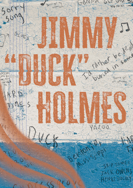 Jimmy “Duck” Holmes is a blues musician and current owner of the Blue Front Cafe, which is home to the “Bentonia Blues,” a unique style of blues music with its own tuning and distinct “eerie” quality. I looked to Holmes’ connection to the Blue Front Cafe and his distinct gritty sound for the heavily textured poster, and the entire background and textures are derived from my own photographs of the Blue Front Cafe. The Blue Front Cafe also inspired all of the type; the style of his name was inspired by the Blue Front Cafe’s main sign while the writings on the wall match the similar ones on the Cafe. Although they match the style of these writings, instead, they tell Holmes’ story with references to his inspirations, his hometown, and song lyrics. Overall, I wanted my poster to to be just like Jimmy “Duck” Holmes: raw, gritty, and real.