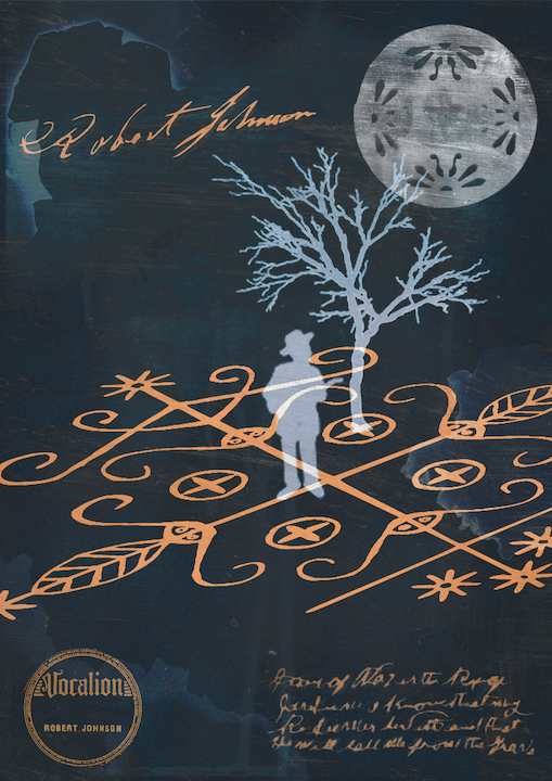 For my poster, I wanted to reference the crossroads folk lore that helped make Robert Johnson such a popular artist. But I wanted to include the more Hattian Voodoo folklore instead of the typical devil in popular media. So for my "crossroads", I used a veve (a religious symbol of a god/deity) of Papa Legba. Papa Legba being the keeper of the crossroads, serving as the intermediary between the lwa and humanity. I also incorporated symbols involving the blues, such as a Resonator guitar as the moon and the symbol of Robert's record label Vocalion.