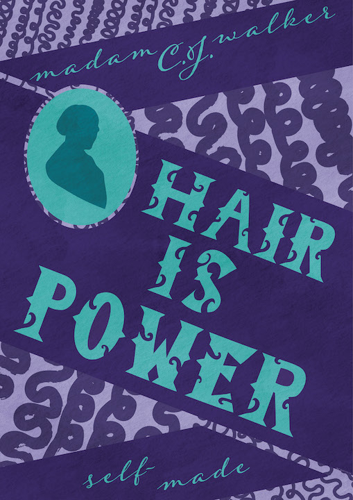 Madam C.J. Walker, born Sarah Breedlove, was recorded as the first female self-made millionaire in the US for her homemade hair care products. I chose to go with a purple and turquoise color scheme, since those were her favorite colors via her daughter A'Lelia Bundles, and were featured in her Barbie doll as well. Knowing how to maintain your hair is so important to people of color, especially women of color. So, I decided to make an original typeface based on the packaging for her products, pair that with a quote that I pulled from her: "Hair is Power." along with the curl pattern chart in the back. As far as the overall layout, I pulled from her products and the old newspapers from the times, the late 1800s-early 1900s, with the portrait and the angled boxes. All of these elements capture who Madam C.J. Walker was and who she stood for.