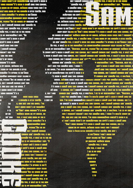An incorporation of both is life and death through typography. The guiding motif is the key hole and is accented by the color choices of black, white, and yellow. The type used throughout the piece is taken from his song A Change is Gonna Come which was his efforts during the Civil Rights Movement.