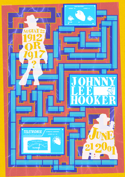 My concept for this poster was based on the electricity the electricity that Johnny emits when playing music since he is well known for playing electric guitar. The maze in the poster signifies his unknown birth date that is still up for debate. I felt this was an important part of his personality and must have been difficult to not know your date of birth.